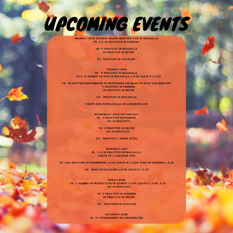 North Border School District will be 2 hours late, Friday, Oct. 27, 2023. Buses will run where possible.